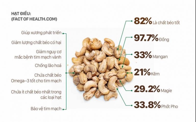 Hạt điều chứa rất nhiều dinh dưỡng và khoáng chất có lợi cho cơ thể